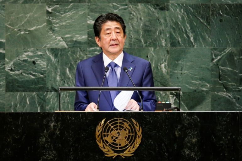 Japan’s Prime Minister Shinzo Abe, a longtime hardliner on North Korea, said he was willing to meet Kim Jong-un at a speech at the UN General Assembly.
