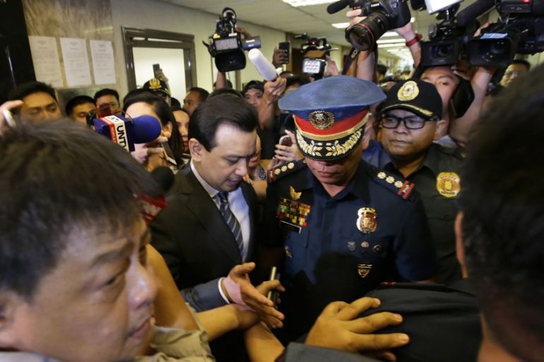 The senator has been fiercely critical of Duterte’s drug war which has killed thousands of people and has accused Duterte of hiding wealth.