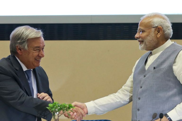 On Wednesday, Guterres also presented Modi the Champions of the Earth Award, the UN’s highest environmental honour, which the Indian leader shares with French President Emmanuel Macron.