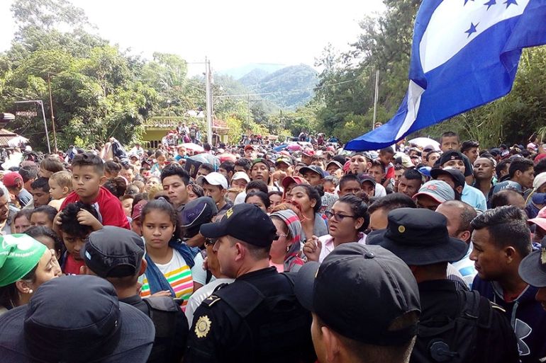 ![Honduran migrants, part of a caravan trying to reach the US, arrive at the border between Honduras and Guatemala [Jorge Cabrera/Reuters]](https://www.aljazeera.com/wp-content/uploads/2018/10/1300ccc96bca4bc78ed28867a617c68b_18.jpeg?quality=80)