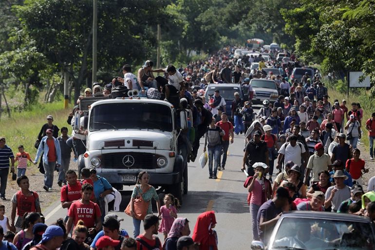 ![Honduran migrants, part of a caravan trying to reach the US, arrive at the border between Honduras and Guatemala [Jorge Cabrera/Reuters]](https://www.aljazeera.com/wp-content/uploads/2018/10/1300ccc96bca4bc78ed28867a617c68b_18.jpeg?quality=80)