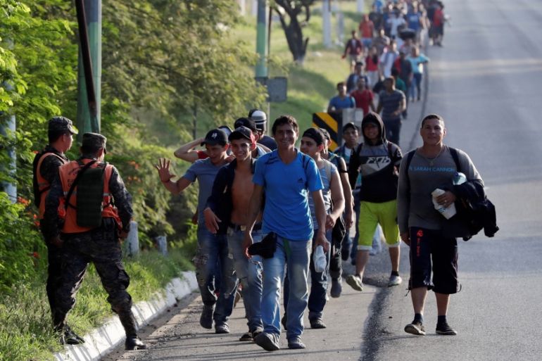 ![Central American migrants and refugees walking to the US start their day departing Ciudad Hidalgo, Mexico, on Sunday [Moises Castillo/AP Photo]](https://www.aljazeera.com/wp-content/uploads/2018/10/f84b348c206149d68fae937bfd9e31e4_18.jpeg?quality=80)
