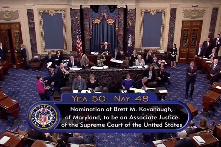 The US Senate voted 50-48 on Saturday to confirm Judge Brett Kavanaugh to the US Supreme Court, pushing the court further to the right.