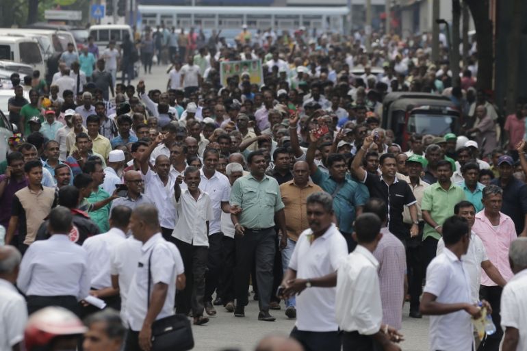![Wickremesinghe arrives at the protest against his removal near the PM's official residence in Colombo [Dinuka Liyanawatte/Reuters]](https://www.aljazeera.com/wp-content/uploads/2018/10/7047dded0a594cd08d488192993f43ab_18.jpeg?quality=80)