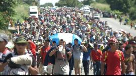 On the move again, the Central American migrant convoy marches across Mexico, towards the US, even as Washington issues another warning.