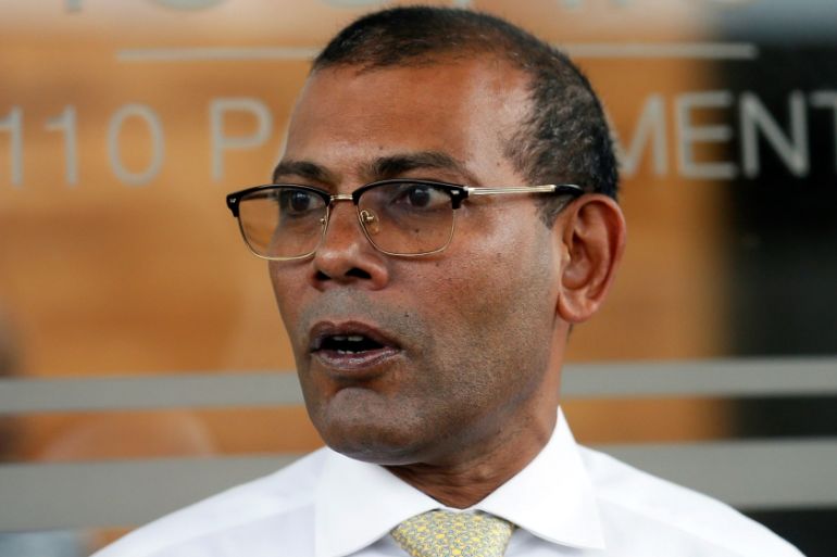 Elected president in the country’s first democratic poll in 2008, Nasheed was found guilty of terror-related violence in 2015 in a trial the UN said was politically motivated.