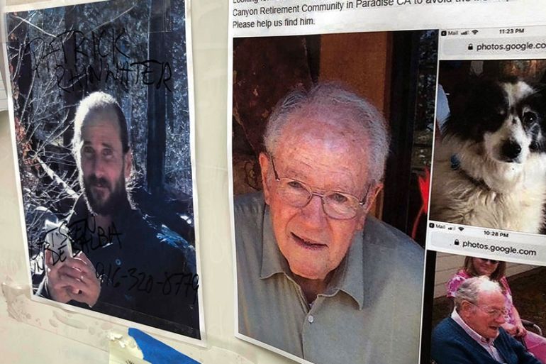![Wildfire evacuee Greg Gibson looks for information about his missing neighbours [Gillian Flaccus/AP]](https://www.aljazeera.com/wp-content/uploads/2018/11/6c243eb6d21e43919ff00d833307c57d_18.jpeg?quality=80)