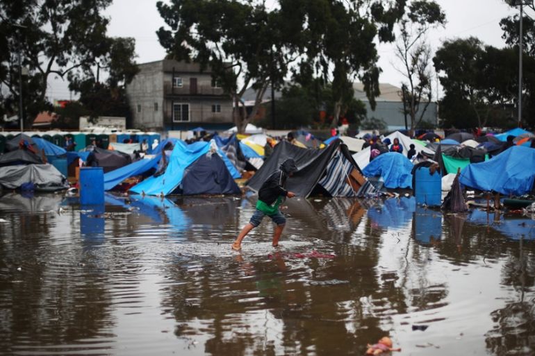 Tijuana, Mexico – As heavy downpours Thursday night flooded the already unsanitary encampment in Tijuana’s northern side where thousands of Central American asylum seekers are being housed, authorities began moving small groups to a new government-run indoor shelter, 20km east of the US-Mexico border.