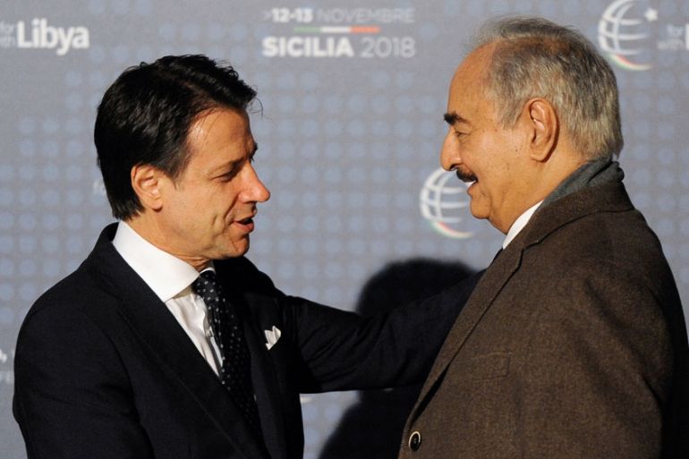 Palermo, Italy – Renegade General Khalifa Haftar is believed to have extended an olive branch to the rival UN-recognised government of Fayez al-Sarraj, saying he will not seek to topple the Tripoli executive until new elections are held in divided Libya.