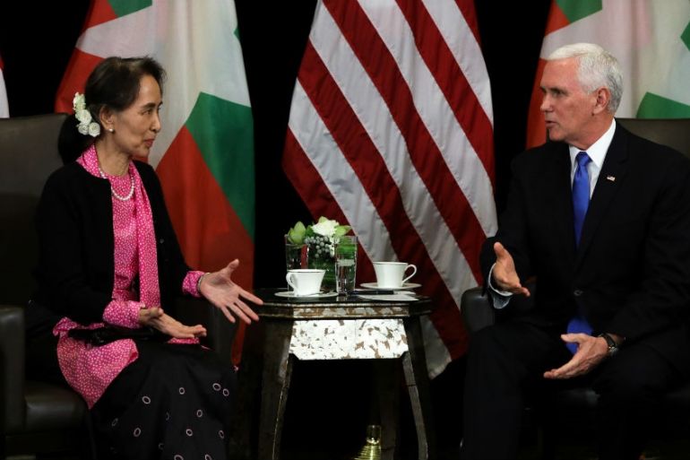 Pence’s comments follow criticism from Malaysia’s Prime Minister Mahathir Mohamad who said on Tuesday the Nobel laureate was trying to “defend the indefensible” in backing Myanmar’s military over the brutal crackdown.