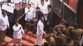 In Sri Lanka, for the second time this week, Prime Minister Mahinda Rajapaksa loses a vote of no confidence even as his supporters try to disrupt proceedings.