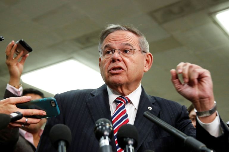 ![Senator Menendez speaks to the media after a closed briefing for senators about the latest developments related to the murder of Khashoggi [Joshua Roberts/Reuters]](https://www.aljazeera.com/wp-content/uploads/2018/11/c2b65e428ab24c2c89c2d60cffbe3ba7_18.jpeg?resize=770%2C513&quality=80)