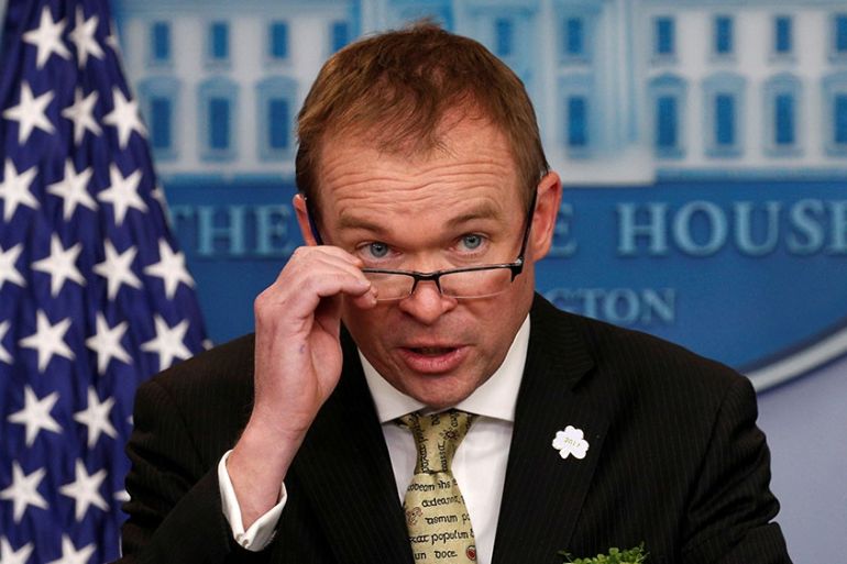 Before he joined the administration, Mulvaney was an outspoken member of the House Freedom Caucus, a powerful bloc of conservative Republican politicians in the House of Representatives.