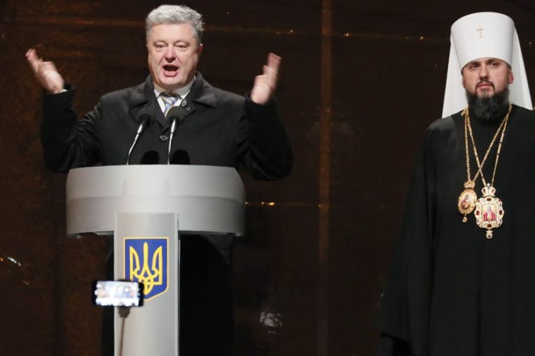 ![Ukrainian believers gather in front of Saint Sophia's Cathedral in Kiev [Gleb Garanich/Reuters]](https://www.aljazeera.com/wp-content/uploads/2018/12/61a478e7b97042a1ab365e56dbf0f915_18.jpeg?quality=80)