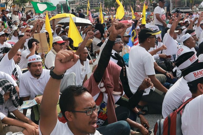 ![Makeshift stalls sold t-shirts and memorabilia for protesters. The badges read 'reject ICERD' and 'Save Malaysia' [Kate Mayberry/Global News Insight]](https://www.aljazeera.com/wp-content/uploads/2018/12/ad6666b2f65f424583571c91bf1587ed_18.jpeg?quality=80)