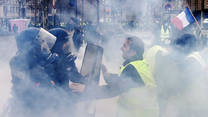 ![Some protesters set fire to barricades and hurled projectiles at riot police [Stephane Mahe/ Reuters]](https://www.aljazeera.com/wp-content/uploads/2018/12/0a7d8c59f7f64a1682bb20764fe8b064_18.jpeg?quality=80)