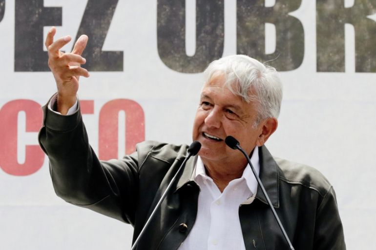 ![Obrador cast his vote on a referendum on the $13.3bn Mexico City International Airport project [Andres Stapff/Reuters]](https://www.aljazeera.com/wp-content/uploads/2018/12/004732a154574b22b9f0f47f7416c832_18.jpeg?quality=80)