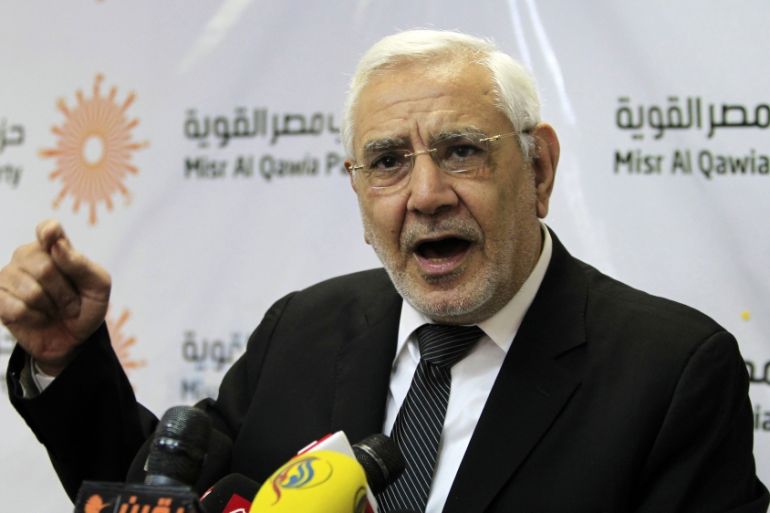 A former member of the Muslim Brotherhood and leader of the Strong Egypt Party, Aboul Fotouh ran as an independent candidate in the 2012 presidential elections, gaining nearly a fifth of the vote in the first round.