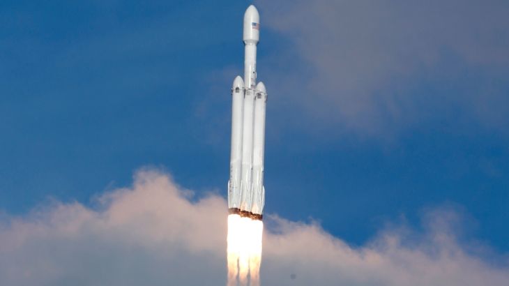 ![A Falcon 9 SpaceX heavy rocket lifts off from pad 39A at the Kennedy Space Center in Cape Canaveral. The Falcon Heavy, has three first-stage boosters, strapped together with 27 engines in all. [John Raoux/AP]](https://www.aljazeera.com/wp-content/uploads/2018/02/1809da28024049adb3e0bc4dec133575_18.jpeg?quality=80)