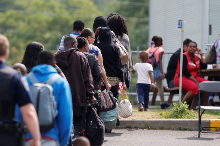 Montreal, Canada – Community activists say they have mobilised to counter efforts by a far-right group to intimidate asylum seekers on the US-Canada border, where thousands of people have entered the province of Quebec from since last year.