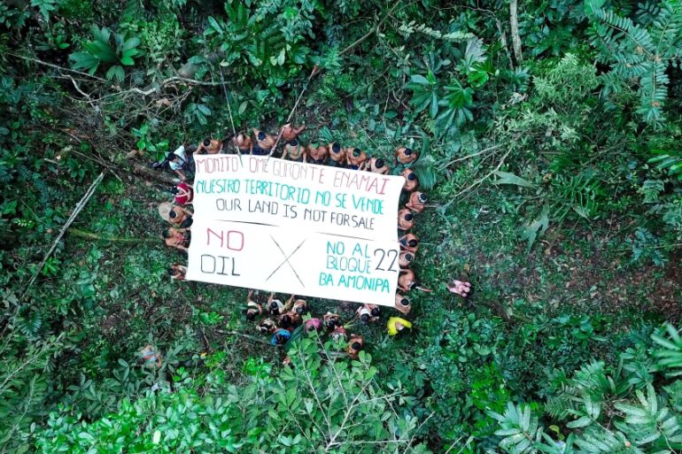 ![Waorani men gathered to finalise details about their international petition against oil block 22. [Kimberley Brown/Global News Insight]](https://www.aljazeera.com/wp-content/uploads/2018/05/3a85895ec88b444c9bf15479ab1cdefa_18.jpeg?quality=80)