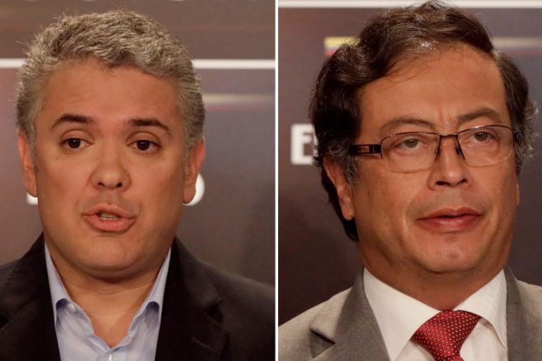 The latest polls show Duque, left, in the lead [Henry Romero/Reuters]