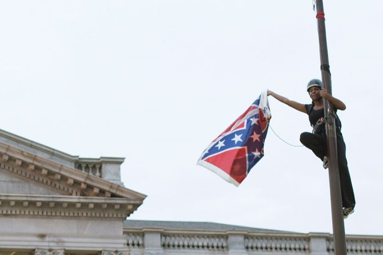 Just weeks after Roof stormed the church, activist Brittany “Bree” Newsome scaled the 9.2-metre tall flagpole outside South Carolina’s statehouse and removed the Confederate flag. Footage of the incident was broadcast on news programmes across the country.