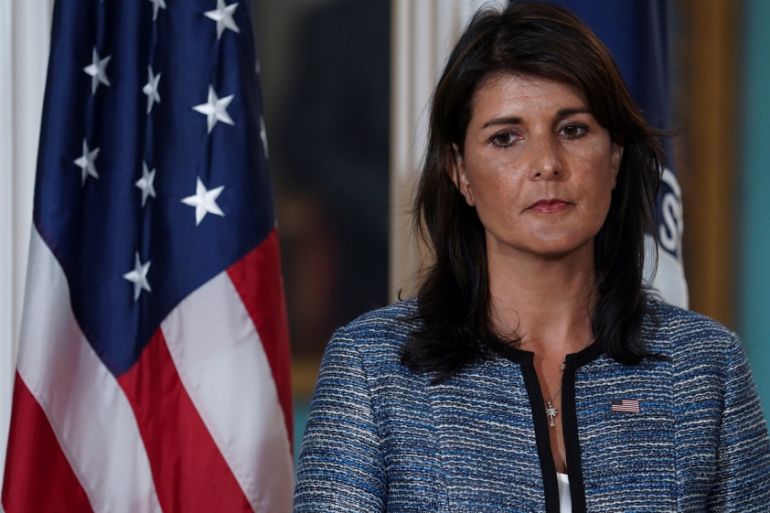 Nikki Haley, the US ambassador to the UN, made the announcement on Tuesday in Washington, DC, alongside US Secretary of State Mike Pompeo.