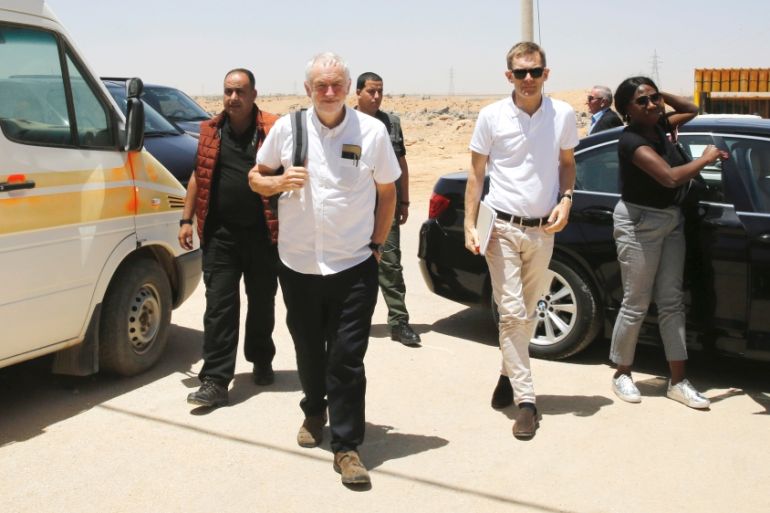 ![A Syrian refugee woman offers sweets to Corbyn during his visit to al-Zaatari refugee camp [Muhammad Hamed/Reuters]](https://www.aljazeera.com/wp-content/uploads/2018/06/00cacd259ef44298bd9971437ad4099f_18.jpeg?quality=80)