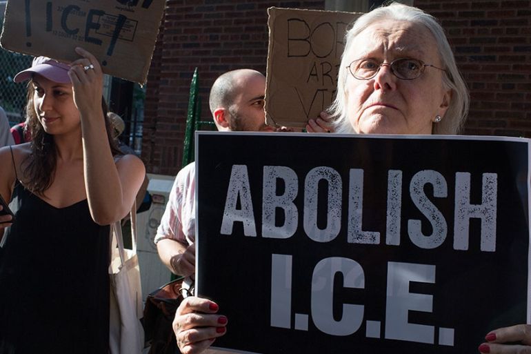 ![Demonstrators standing with Occupy ICE NYC protest the detainment and deportation of immigrants [Karla Ann Cote/NurPhoto via Getty Images]](https://www.aljazeera.com/wp-content/uploads/2018/06/54e89a4ea4754577b477e244918a6489_18.jpeg?quality=80)