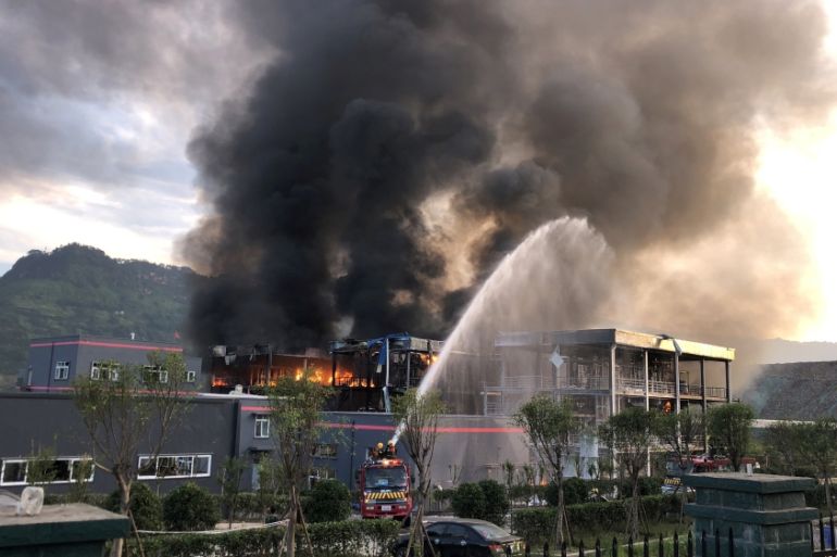 Images on Chinese social media showed a huge fire and plumes of smoke rising from the facilities Thursday night.