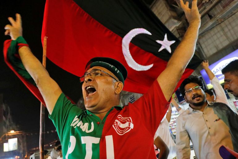 ![Supporters of PTI's Imran Khan wave a party flag in Rawalpindi [Faisal Mahmood/Reuters]](https://www.aljazeera.com/wp-content/uploads/2018/07/e8b99db01c554c4b8275c5083b76d4aa_18.jpeg?quality=80)