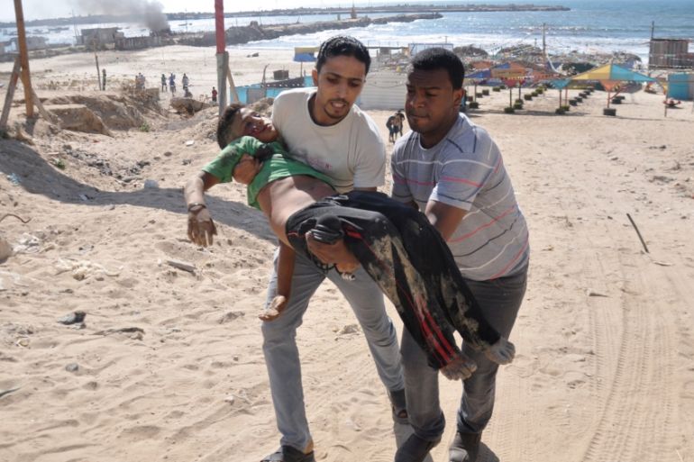 On July 16, 2014, four children were playing near a shipping container on a jetty that had been destroyed by an Israeli air raid a day earlier because the Israeli military suspected it of being used as a weapons cache by armed members of Hamas.