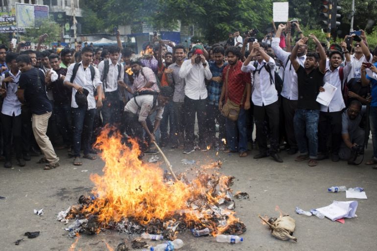 ![Bangladeshi students shout slogans as they block a road during a protest in Dhaka [A. M. Ahad/Bangladesh]](https://www.aljazeera.com/wp-content/uploads/2018/08/67613074ac15408cbfe90d19974a82a7_18.jpeg?quality=80)