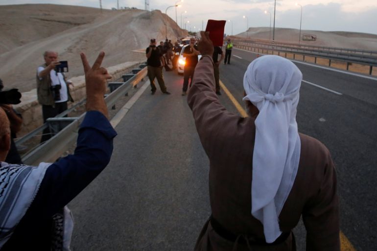 The villagers are members of the Bedouin Jahalin tribe that was expelled from their lands in the Naqab (Negev) desert by the Israeli military in the 1950s. They were displaced twice more before they settled in Khan al-Ahmar, long before the illegal settlements around it existed.
