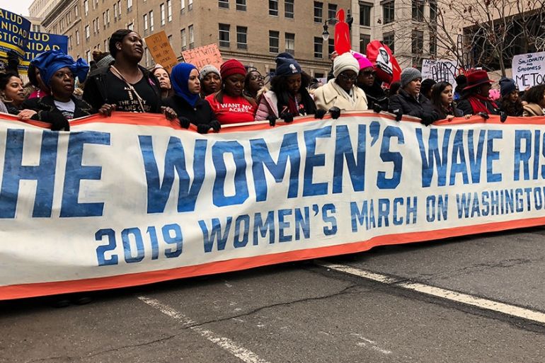 ![This year's march came after a year of historic gains for women in politics in the US [Laurin-Whitney Gottbrath/Global News Insight]](https://www.aljazeera.com/wp-content/uploads/2019/01/6fc9982ccdf64059885cd0fe797f0d71_18.jpeg?quality=80)
