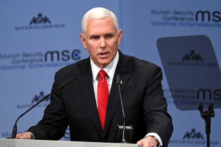 On Saturday, Pence said the “time has come” for the US’s European partners to “withdraw from the Iran nuclear deal and join us as we bring the economic and diplomatic pressure necessary to give the Iranian people, the region, and the world the peace, security, and freedom they deserve”.