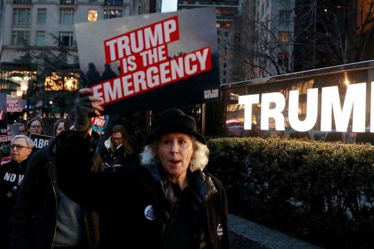 ![Protesters outside the White House rally against Trump's national emergency deceleration on February 18, 2019. [Ola Salem/Global News Insight]](https://www.aljazeera.com/wp-content/uploads/2019/02/b994fafc68b24674b6cf7e81706759f7_18.jpeg?quality=80)
