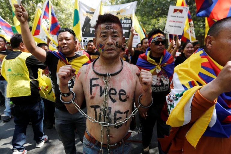 ![A Tibetan activist riding a horse escorts a vehicle with the picture of Dalai Lama in New Delhi [Sajjad Hussain/AFP]](https://www.aljazeera.com/wp-content/uploads/2019/03/cfe336cbde9d4087bc58b76020b1380e_18.jpeg?quality=80)