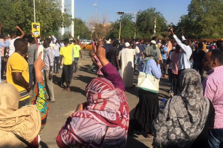 “We reiterate our people’s demand that the head of the regime and his government have to immediately step down,” Omar el-Digeir, a senior member of the group, said in a statement outside the army headquarters.