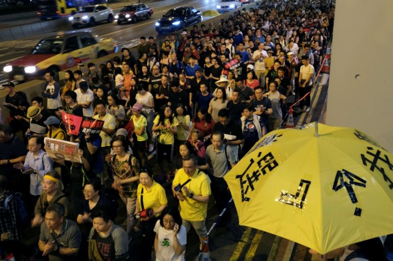 ![Demonstrators hold yellow umbrellas, the symbol of the Occupy Central movement, during the protest to demand authorities scrap a proposed extradition bill with China [Tyrone Siu/Reuters]](https://www.aljazeera.com/wp-content/uploads/2019/04/d3d6c2b297e24d1c906cb22b9ef80bca_18.jpeg?quality=80)