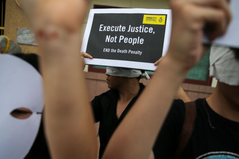 People convicted of terrorism, homicide, rape, armed robbery and drug trafficking face the death penalty, which the government says is a deterrent for further crime.
