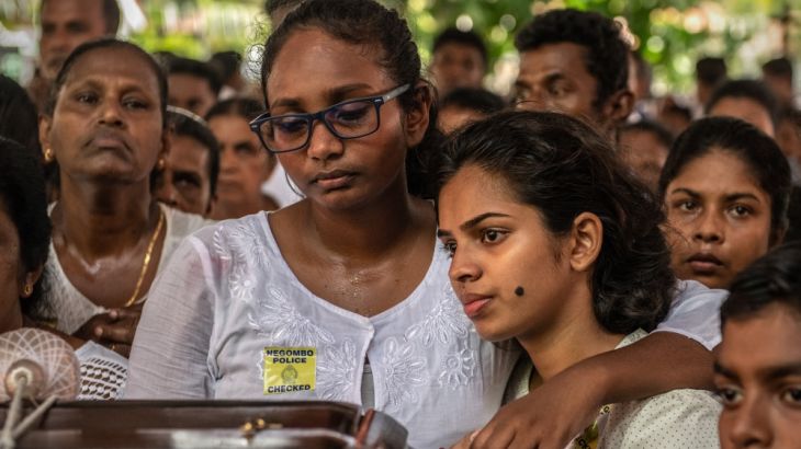 ![Sri Lankans pray during a three-minute nationwide silence observed to pay homage to the victims of Easter Sunday's blasts outside St Anthony's Shrine in Colombo [Eranga Jayawardena/AP]](https://www.aljazeera.com/wp-content/uploads/2019/04/f0df456076ea4480949e1164df4705c4_18.jpeg?quality=80)