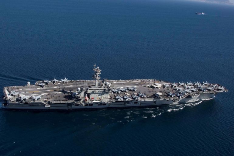 Official says US announcement on sending carrier strike group to Middle East is ‘clumsy use of an out-of-date event’.