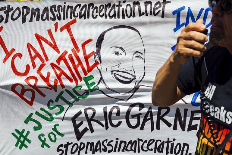 ![Demonstrators calling for justice in the death of Eric Garner take part in a protest march outside the 120th police precinct in the Staten Island borough of New York City [File: Mike Segar/Reuters]](https://www.aljazeera.com/wp-content/uploads/2019/05/32548bd17fc74fa7b82c71e6ff5a2e6a_18.jpeg?quality=80)