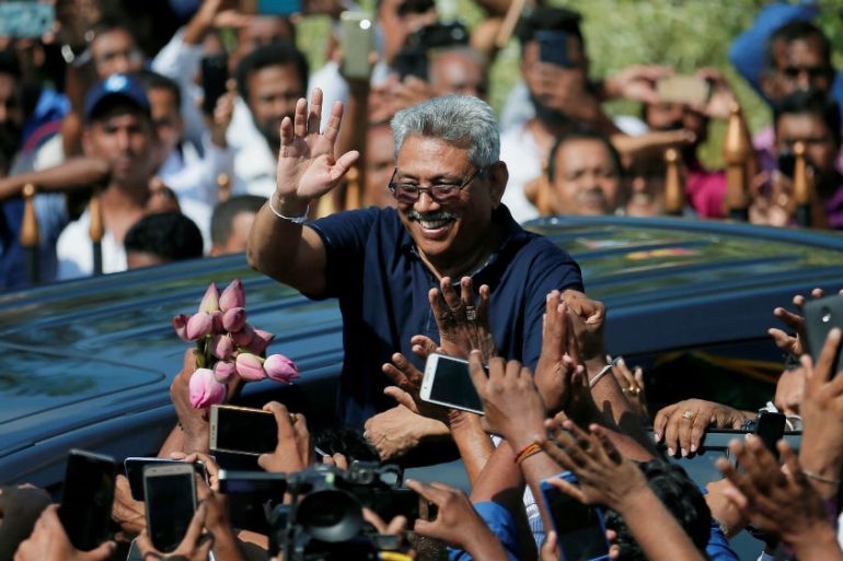 ![This photograph was released by Sri Lanka's military on the day the government declared victory over the Tamil Tiger rebels. Rajapaksa is seen as the architect of the victory [Reuters]](https://www.aljazeera.com/wp-content/uploads/2019/05/94e5d3bacb8641b4bd11cf2f00ce014d_18.jpeg?quality=80)