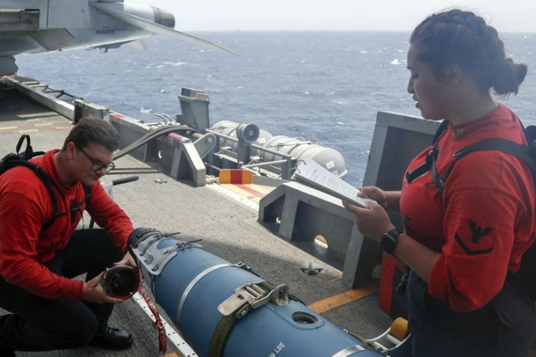 ![US Navy personnel aboard the aircraft carrier USS Abraham Lincoln [Jeff Sherman/AP]](https://www.aljazeera.com/wp-content/uploads/2019/05/8655d357c2bc4c089f04c77c231b8a8d_18.jpeg?quality=80)