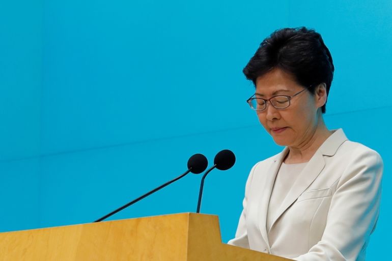 Lam stopped short of meeting protesters’ demands to scrap the bill, but said legislative work on it had been “stopped immediately” and there was no timetable to resume.