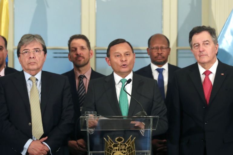 “While the solution needs to be a Venezuelan one, the regional impact of the crisis requires the region and the international community to play a more active role in supporting a prompt return to democracy,” said Monday’s statement, which was read out at a news conference by Peruvian Foreign Minister Nestor Popolizio.