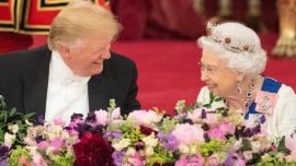 Britain’s Queen Elizabeth II stresses common values during controversial Trump visit.